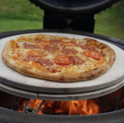 De Deflektorstenen zijn 2 halve cirkels, zo kan er bij gebruik van 1 helft direct en indirect tegelijk worden gebarbecued wat het gebruik van de Monolith nog veelzijdiger maakt.