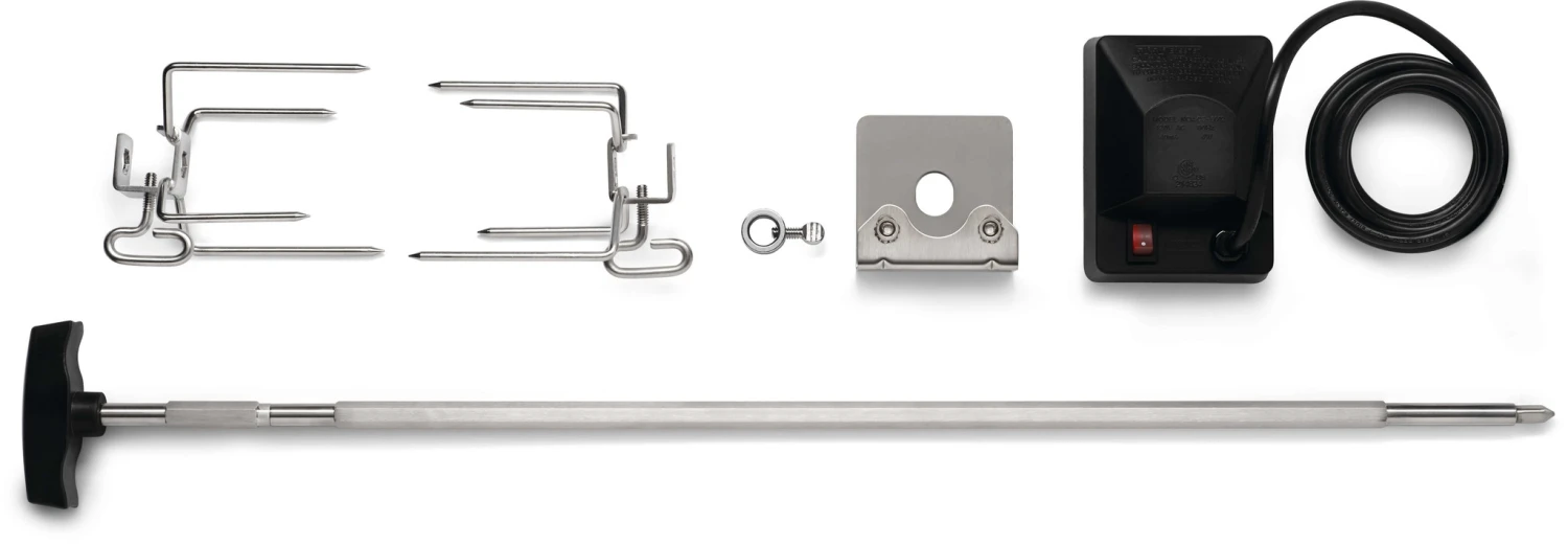 Het koken met een spit is een leuke belevenis en zorgt er voor dat de gerechten nog sappiger blijven. Met dit draaispit haal je nog meer uit je Napoleon Freestyle gasbarbecue! Met de rotisserieset bereidt je heerlijke gegrilde kippetjes, braadstukken, lamsbout of zelfs geroosterde groenten. Door de rotatie van de draaispit bedruipt het gerecht zichzelf en gaart het in zijn eigen vocht. Dit geeft een heerlijk sappig en mals resultaat met een krokant korstje.