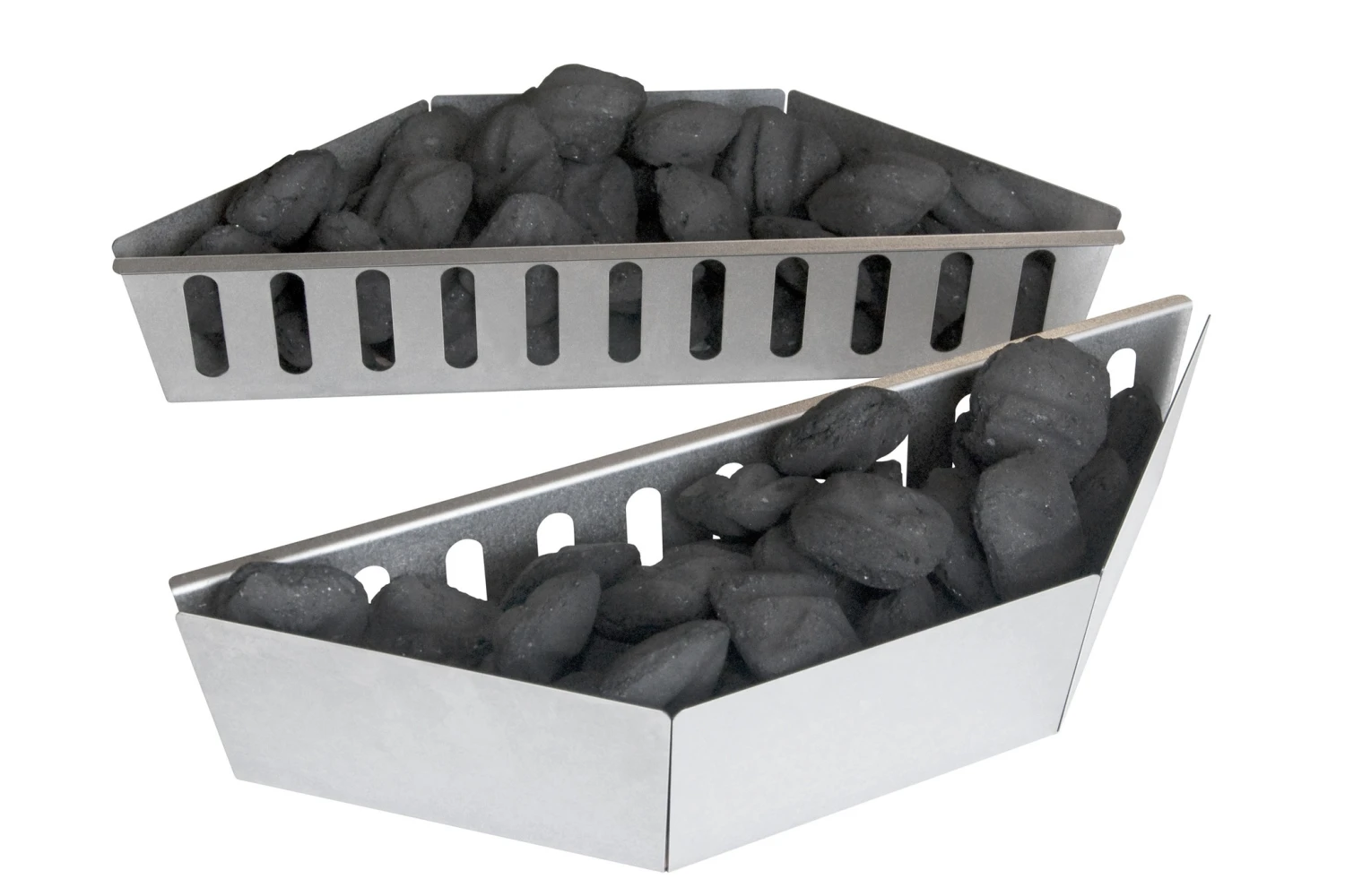 Door gebruik van deze houtskoolkorven zorg je voor verschillende warmteniveaus of zones in jouw barbecue. Je vult de beide houtskoolkorven met de kolen en plaatst ze aan de zijkant in jouw barbecue. Hierdoor is de barbecue in het midden minder heet zodat je daar rustiger kunt grillen dan aan de zijkanten.