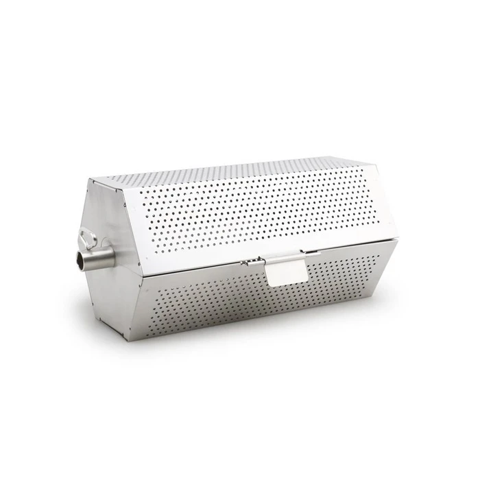 Fijnmazige grillmand, perfect voor de bereiding van kleine, fijngesneden gerechten zoals friet, zeevruchten, pinda’s, noten, bonen en groenten. De roterende beweging zorgt ervoor dat voedsel en groenten allemaal volledig gaar zijn.